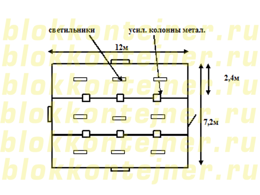 Блок -модуль  БМ 12,0*7,2*2,5м  состоит  из 3-х БК  12,0 х 2,4 х 2,5м
