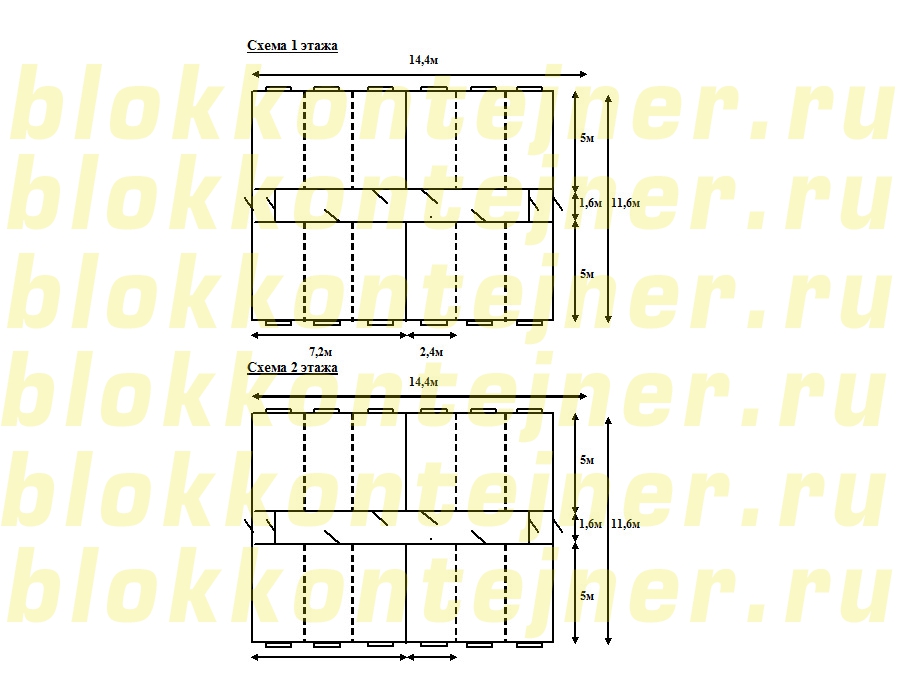 Блок - модуль  26,4 *12,0*5,0м  состоит из 24 блок-контейнеров