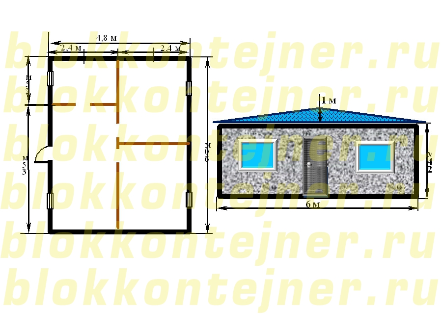 Блок - контейнер  БК  6,0*4,8*2,5 – 2 шт.